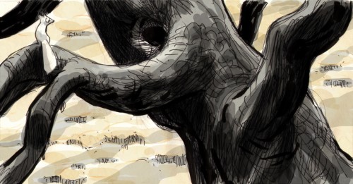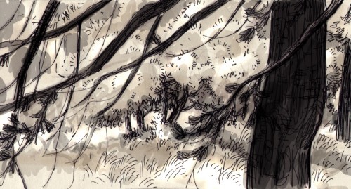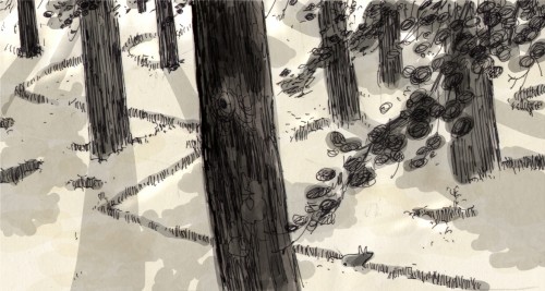 Manu Arenas' wonderful, early b/w concepts (top and middle) inspired the "field of dandylions" sequence, which was later further visualized by the very talented Louis Tardivier (bottom).