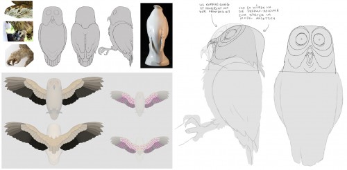 Here are some of the horrible things we had to do to Harald's beautiful drawings further down the road (click to enlarge). Modelsheet for Owl by Jakob Schuh.