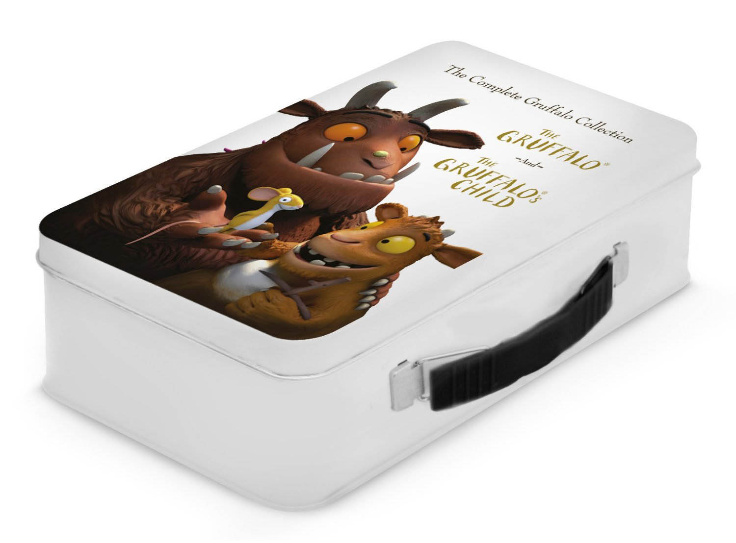 Oh, the joys of the internet, look what we found on amazon UK: Starting Oct. 1st you can apparently order both "The Gruffalo" and "The Gruffalo's Child" in one sweet looking tin suitcase, just big enough for a Mouse-sandwich and a piece of Gruffalo-crumble, once you've removed the DVD's. Nice!