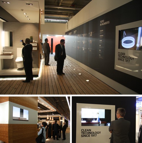 In March, we finished production of "Toto House", a corporate film for Japanese sanitary manufacturer TOTO. Directed and designed by Soi's Uwe Heidschoetter, the film premiered simultaniously on the web and at ISH ‘11 in Frankurt. We rececently received a few photos showing the framework the film was presented in at ISH, and we thought that they looked quite nice. Thank you, Toto.